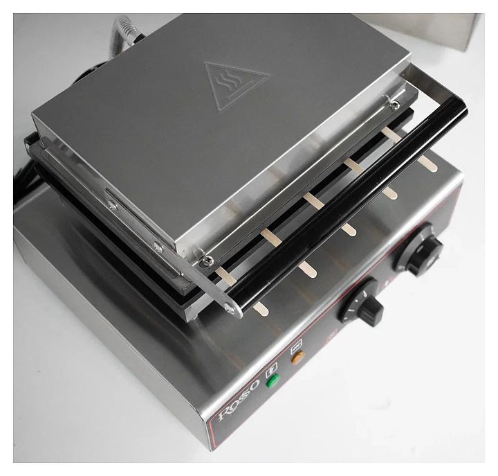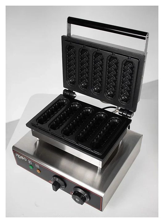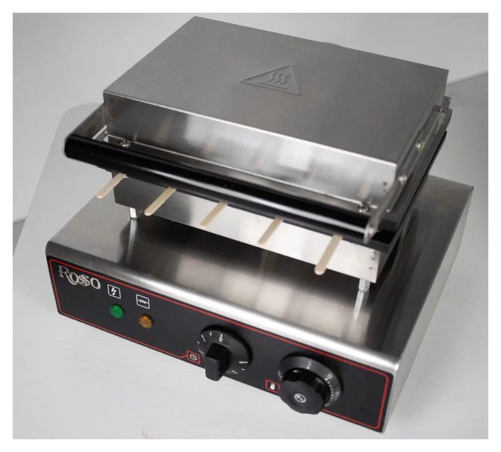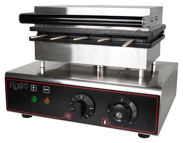 Аппарат для корн-догов Rosso HX-117 используется на предприятиях общественного питания и торговли для приготовления фигурных вафель на палочке с разнообразными начинками: сосиски, сыр, бекон, топпинги, фрукты и мороженое. Модель оснащена терморегулятором и электронным таймером. Корпус выполнен из нержавеющей стали, рабочая поверхность - из чугуна с антипригарным тефлоновым покрытием.