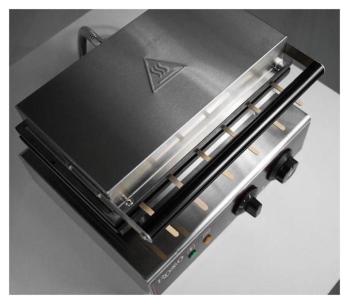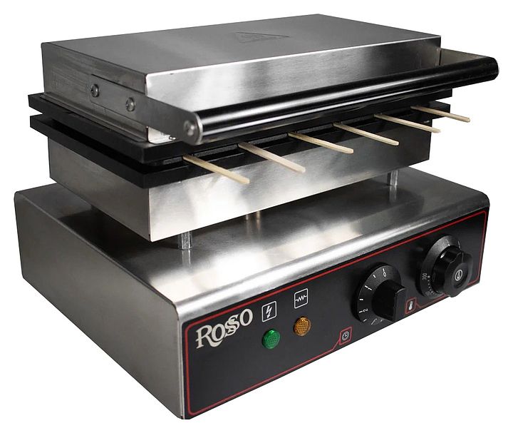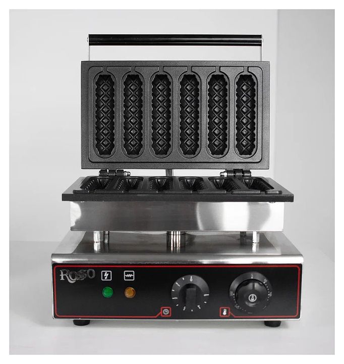 Аппарат для корн-догов Rosso HX-119 используется на предприятиях общественного питания и торговли для приготовления фигурных вафель на палочке с разнообразными начинками: сосиски, сыр, бекон, топпинги, фрукты и мороженое. Модель оснащена терморегулятором и электронным таймером. Корпус выполнен из нержавеющей стали, рабочая поверхность - из чугуна с антипригарным тефлоновым покрытием.