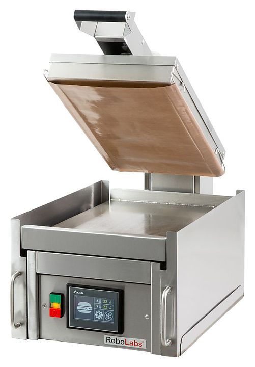 Контактный гриль RoboLabs RoboSmartGrill ГЧ1АН Deluxe предназначен для жарки мяса, птицы, рыбы, овощей, а также для приготовления стейков, гамбургеров и горячих сэндвичей на предприятиях пищевой промышленности, общественного питания и торговли. Модель оснащена электронным управлением и 2 выдвижными поддонами для жира с обеих сторон, обеспечивающих легкую и быструю очистку. Корпус и жарочная поверхность выполнены из нержавеющей стали AISI 430.