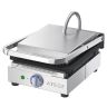 Прижимной гриль ATESY Маэстро ГК-1-1.55РЧ используется на предприятиях общественного питания и торговли для быстрого приготовления и разогрева горячих блюд из мяса, рыбы, птицы, яиц и овощей, а также для приготовления горячих бутербродов, сэндвичей и панини благодаря их одновременному поджариванию с двух сторон. Нагрев осуществляется ТЭНами, расположенными в верхней и нижней жарочных поверхностях. Модель оснащена легкосъемным поддоном для сбора стекающего с продукта жира. Корпус выполнен из пищевой нержавеющей стали AISI 430, жарочные поверхности - из чугуна.