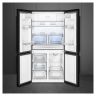 Холодильник SMEG FQ60NDE типа Side-by-Syde предназначен для охлаждения, заморозки, кратковременного и длительного хранения пищевых продуктов и напитков в гостиницах, офисах и домашних условиях. Модель оснащена холодильной и 2 морозильными камерами, 4 распашными дверьми с длинными вертикальными рукоятками, кабелем питания с евровилкой, расположенной на фронте верхней левой двери панелью управления с сенсорными функциональными клавишами и светодиодным дисплеем. Корпус выполнен из стали с антикоррозийным покрытием черного цвета, облицовка интерьера – из белого пластика, плоские полки – из безопасного закаленного стекла, ящики и навесные полки – из прочного прозрачного полимера, рукоятки – из металла с черной поверхностью, окантовка полок и ящиков – из металлического профиля с сатинированной серебристой поверхностью.