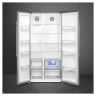 Холодильник SMEG SBS63XDE типа Side-by-Syde предназначен для охлаждения, заморозки, кратковременного и длительного хранения пищевых продуктов и напитков в гостиницах, офисах и домашних условиях. Модель оснащена холодильной камерой справа и морозильной камерой слева, 2 распашными дверьми с длинными вертикальными рукоятками, кабелем питания с евровилкой, расположенной на фронте левой двери сенсорной панелью управления с функциональными клавишами и светодиодным дисплеем. Корпус выполнен из стали с антикоррозийным покрытием цвета нержавеющая сталь, облицовка интерьера – из белого пластика, плоские полки – из безопасного закаленного стекла, ящики и навесные полки – из прочного прозрачного полимера, рукоятки – из металла с поверхностью цвета нержавеющая сталь, окантовка полок и ящиков – из металлического профиля с сатинированной серебристой поверхностью.