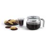 В комплект поставки входят стеклянный кувшин для кофе на 10 чашек с ручкой и крышкой, многоразовый фильтр с ручкой и мерная ложка для молотого кофе.