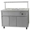 Мармит Тулаторгтехника МТ2-1(2) предназначен для демонстрации, подогрева и поддержания в теплом состоянии вторых блюд на предприятиях общественного питания и торговли. Модель оснащена полкой с подсветкой, нейтральным отсеком с 3 дверками и 4 регулируемыми по высоте опорами, позволяющими компенсировать неровности пола. Изделие выполнено из пищевой нержавеющей стали.