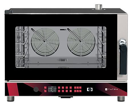 Пекарский пароконвектомат Tatra TBI 04 DC.5V предназначен для выпекания кондитерских и хлебобулочных изделий из свежего и замороженного теста с применением режимов сочетания конвекции и пара. Модель оснащена электронным управлением, LCD экраном, инжекторным пароувлажнением, галогеновым освещением камеры, закругленными углами для легкой очистки и 2 реверсивными вентиляторами для равномерного приготовления. Двойное жаростойкое стекло сокращает теплопотери и защищает персонал от ожогов. USB порт позволяет выгружать и загружать рецепты и изображения, выгружать данные HACCP, обновлять ПО, Wi-Fi подключение делает возможным управлять пароконвектоматом со смартфона или планшета. Корпус и камера выполнены из нержавеющей стали.