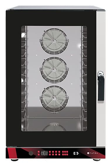 Пекарский пароконвектомат Tatra TBI 10 DC.5V предназначен для выпекания кондитерских и хлебобулочных изделий из свежего и замороженного теста с применением режимов сочетания конвекции и пара. Модель оснащена электронным управлением, LCD экраном, инжекторным пароувлажнением, галогеновым освещением камеры, закругленными углами для легкой очистки и 3 реверсивными вентиляторами для равномерного приготовления. Двойное жаростойкое стекло сокращает теплопотери и защищает персонал от ожогов. USB порт позволяет выгружать и загружать рецепты и изображения, выгружать данные HACCP, а также обновлять ПО, Wi-Fi подключение делает возможным управлять пароконвектоматом со смартфона или планшета. Корпус и камера выполнены из нержавеющей стали.