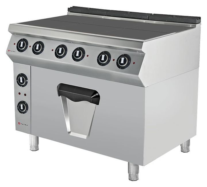 Электрическая плита Tatra TER.129OM серии 900 используется на предприятиях общественного питания и торговли для приготовления различных блюд из мяса, птицы, рыбы и овощей в наплитной посуде, а также жарки и выпекания в жарочном шкафу. Модель оснащена 6 конфорками, статическим электрическим жарочным шкафом MAXI, световыми индикаторами работы нагревательных элементов и регулируемыми по высоте ножками. Подъемные конфорки со специальным креплением на петлях обеспечивают легкий доступ для обслуживания к внутренним элементам плиты. Корпус выполнен из нержавеющей стали, конфорки - из чугуна.