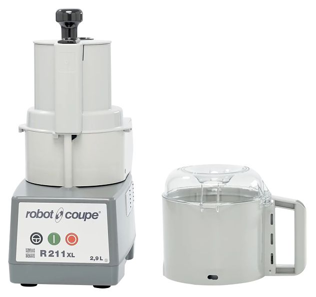 Кухонный процессор (куттер-овощерезка) Robot Coupe R 211 XL предназначен для измельчения сухарей, орехов и шоколада, для натирания сыра и нарезки фруктов, овощей и мяса на предприятиях общепита и профессиональных кухнях. Чаша выполнена из композитного материала, корпус моторного отсека - из светло-серого поликарбоната, диск-сбрасыватель - из ABS пластика, вал двигателя - из нержавеющей стали.