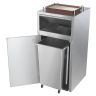 - Сброс мусора осуществляется через горизонтальную заслонку в верхней части тумбы