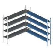 Модель представляет собой дополнительную угловую секцию модульной стеллажной системы и может стыковаться в линию с базовой и дополнительной линейной секциями.