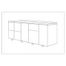 - 1 секция: 2 стандартных ящика; 2 секция: 2 стандартных ящика; 3 секция: дверь; 4 секция: 1 маленький ящик и 1 большой ящик