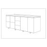- 1 секция: 2 стандартных ящика; 2 секция: 2 стандартных ящика; 3 секция: 3 маленьких ящика; 4 секция: дверь