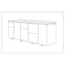 - 1 секция: 2 стандартных ящика; 2 секция: 3 маленьких ящика; 3 секция: 1 маленький ящик и 1 большой ящик; 4 секция: дверь