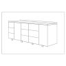 - 1 секция: 3 маленьких ящика; 2 секция: дверь; 3 секция: 3 маленьких ящика; 4 секция: 3 маленьких ящика