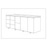 - 1 секция: 3 маленьких ящика; 2 секция: 3 маленьких ящика; 3 секция: 2 стандартных ящика; 4 секция: дверь