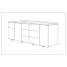 - 1 секция: 1 маленький ящик и 1 большой ящик; 2 секция: дверь; 3 секция: 3 маленьких ящика; 4 секция: 3 маленьких ящика