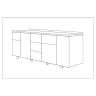 - 1 секция: 1 маленький ящик и 1 большой ящик; 2 секция: дверь; 3 секция: 3 маленьких ящика; 4 секция: 1 маленький ящик и 1 большой ящик