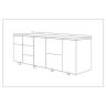 - 1 секция: 1 маленький ящик и 1 большой ящик; 2 секция: 3 маленьких ящика; 3 секция: дверь; 4 секция: 2 стандартных ящика