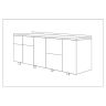 - 1 секция: 1 маленький ящик и 1 большой ящик; 2 секция: 1 маленький ящик и 1 большой ящик; 3 секция: дверь; 4 секция: 2 стандартных ящик