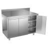 Производственный стол ATESY СТ-С-1.150-1500.600-02-Р-2П серии Стандарт используется на предприятиях общественного питания и торговли для разделывания и обработки пищевых продуктов, а также в качестве вспомогательной поверхности для кухонного оборудования. Модель оснащена 3 распашными дверцами и 2 переставными полками. Изделие выполнено из легированной стали, столешница дополнительно укреплена листом ламинированной древесностружечной плиты с внутренней стороны.