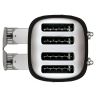- Управление при помощи скользящего рычага (начало цикла), кнопок с подсветкой (активация функций) и поворотного переключателя с подсветкой (регулировка уровня поджаривания)