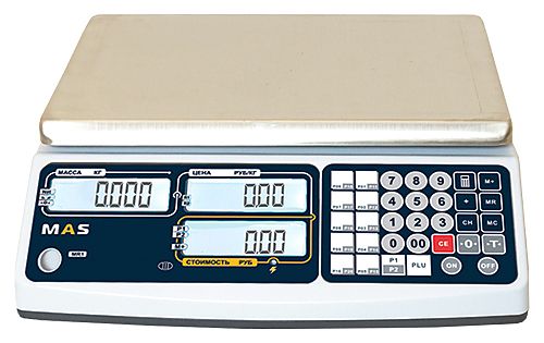 Торговые весы MAS MR1-06 используются на предприятиях общественного питания и торговли для точного взвешивания различных товаров и продуктов питания. Модель оснащена мембранной влагостойкой клавиатурой, ярким ЖК-дисплеем с размером символов 18 мм и дисплеем для покупателя. Платформа выполнена из нержавеющей стали.