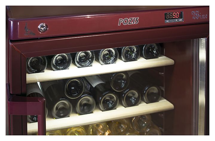 Винный шкаф POZIS ШВД-78 создает особые условия для хранения вин, сохраняя их первозданный вид, вкус и аромат. Тонированный стеклопакет на двери предотвращает проникновение солнечных лучей, ухудшающих качество вина, особая циркуляция воздуха поддерживает нужный уровень влажности, а деревянные полки снижают уровень вибрации от компрессора. Для удобства пользования цифровой панелью дисплей, отображающий температуру, располагается над дверью в зоне постоянной видимости.