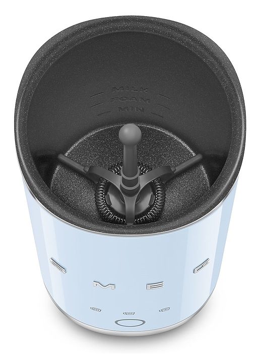 Вспениватель молока Smeg MFF02PBEU используется в частных домах и квартирах для приготовления молочной пены для кофейных напитков и горячего шоколада. Модель оснащена многофункциональной кнопкой, съемным венчиком и нескользящими ножками. Корпус и крышка выполнены из пластика, внутреннее покрытие - из керамики.